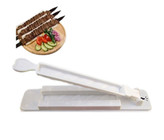 کباب زن دستی ، ابزاری با طراحی ساده و عملکردی کاربردی جهت استفاده در منزل می باشد . این محصول تولید شده از جنس پلاستیک فشرده مقاوم بوده و در میان خود قالبی باریک به اندازه یک سیخ کباب کوبیده دارد که اهرمی به همان شکل بر روی آن جای گرفته تا بتوانید به سادگی مواد را بر روی سیخ قالب بزنید با شمایلی منظم و یکدست . صرفه جویی در زمان و انرژی به همراه نتیجه ای مطلوب در سیخ کردن کباب های کوبیده از جمله خصوصیات استفاده از کباب زن دستی پلاستیکی است . منزل ، پیک نیک ، کمپینگ ، مسافرت و یا هر جای دیگری که نیاز داشته باشید می توانید از این محصول برای تهیه انواع کباب کوبیده به ساده ترین شکل ممکن استفاده کنید . طراحی ساده و کاربردی ابعاد کلی : 37cm * 8.3cm * 2.5cm تولید شده از جنس پلاستیک فشرده مقاوم دارای یک عدد قالب سیخ کوبیده وزن و ابعاد مناسب با قابلیت حمل و جابه جایی آسان ارائه شده در رنگ سفید سیخ کردن سریع ، آسان و شکیل کباب کوبیده سهولت در استفاده و شست و شو مناسب برای تهیه انواع کباب کوبیده در منزل ، کمپینگ ، پیک نیک و سفر طرز استفاده از کباب زن کوبیده خانگی : ابتدا اهرم را به سمت بالا باز کنید . یک نایلون را روی قالب کباب قرار دهید و مقداری با دست خود آن را خیس کنید . سپس مقداری گوشت (70 تا 75 گرم) را بر روی شیار قالب قرار دهید . سیخ را بر روی مواد قرار داده و مقداری به سمت داخل فشار دهید . لبه های نایلون را از دو طرف به سمت داخل جمع کنید ، به طوری که مقدار مواد دو طرف سیخ بر روی آن برگردد . اهرم را پایین آورده و سعی کنید مقداری بادست طول آن را به سمت داخل فشار دهید . سپس اهرم را برداشته و نایلون را از سیخ جدا کنید . در نهایت قسمت های اضافی بالا و پایین مواد را از سیخ جدا نمایید ، کباب آماده طبخ است . توجه داشته باشید در صورتی که بخواهید کباب را درون تابه درست کنید ، نیازی به استفاده از سیخ نخواهید داشت و تنهای کافیست مواد را درون قالب روی نایلون گذاشته و اهرم را به سمت پایین آورید و کمی فشار دهید تا کباب شما فرم بگیرد و آماده طبخ درون تابه باشد . ساخت کشور ایران