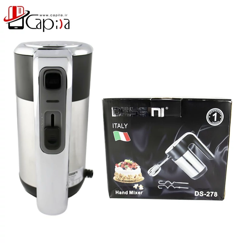همزن یکی از نیازهای اولیه هر خانه ای جهت هم زدن مواد اولیه برای آشپزی می باشد، همزن دستی دسینی یکی از مدل های کارآمد و باکیفیت این شرکت می باشد،که با طراحی ظاهری خیلی شیکی به بازار عرضه شده است، همزن دسینی مدل DS-268 دارای قدرت موتور ۴۵۰ وات با عملکردی ۵ سرعته و حالت توربو موتور سرعت لحظه ای پالس می باشد. این حالت برای سرعت بخشیدن به هم زدن زمانی که بخواهید سریعتر کاری انجام دهید بسیار موثر می باشد،
