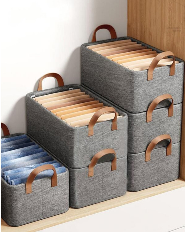 باکس لباس و شلوار داخل کمد یک جعبه پارچه ای بسیار سبک و کم حجم به شکل مستطیل با ابعاد طول 40، عرض 25 و ارتفاع 24 سانتیمتر میباشد که دارای اسکلت داخلی جمع شونده است که علاوه بر حفظ شکل ظاهری باکس، استحکام بیشتری نیز ایجاد مینماید. باکس لباس و شلوار داخل کمد با ارتفاع مناسبی که حین باز کردن آن وجود دارد میتوان حجم قابل توجهی از لباس و پیراهن و شلوار را در داخل خود جای دهد.